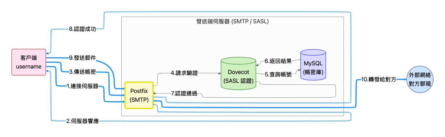 E. SASL 認證 (整合 Dovecot) —— 寄信驗證